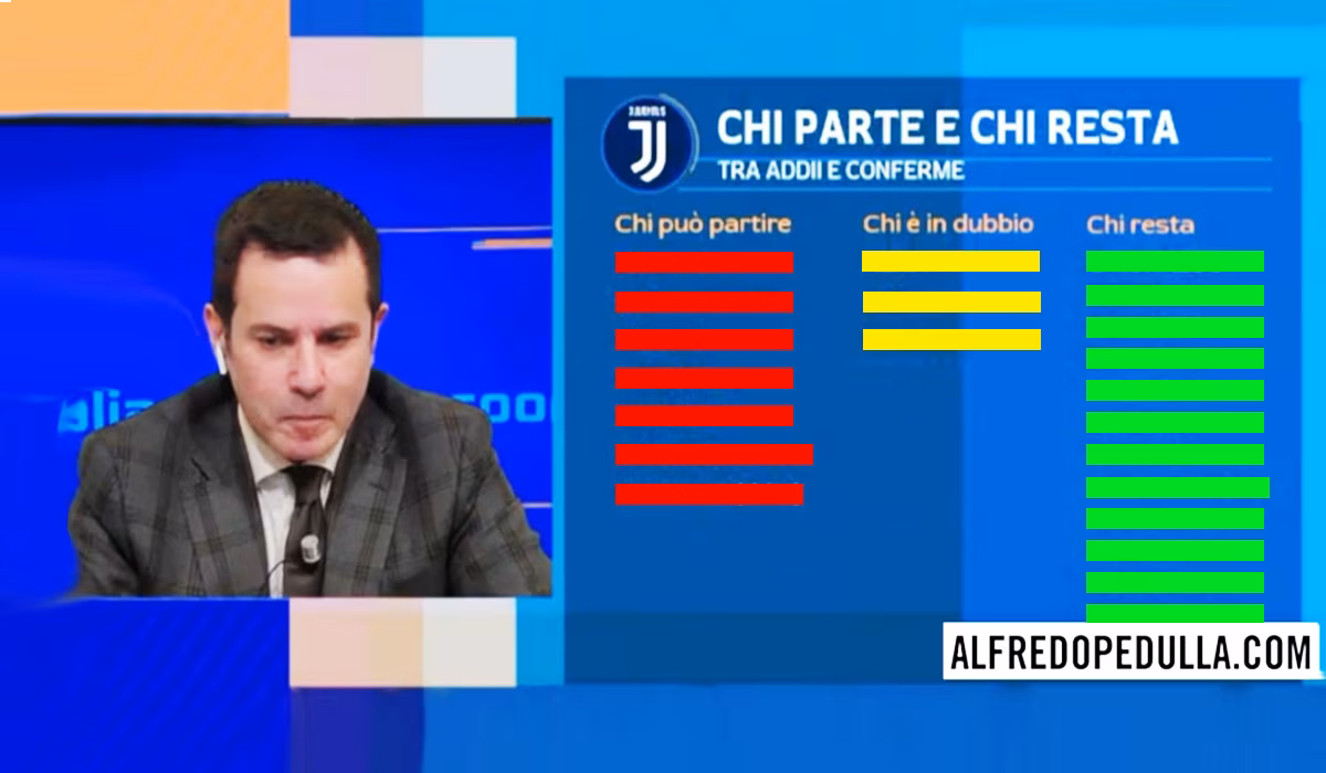 NEWS MERCATO JUVE – Come vi stiamo raccontando ormai da settimane, il prossimo calciomercato della Juventus riserverà grossi colpi di scena. Ma chi partirà e chi arriverà? A fare il punto della situazione ci ha pensato il noto giornalista ed esperto di calciomercato Alfredo Pedullà, che ha svelato parecchie indiscrezioni interessanti tra possibili cessioni e nuovi acquisti. Partiamo però da chi sarà confermato. Secondo Pedullà, sicuri della riconferma sono Cristiano Ronaldo, Szczesny, Cancelo, Bonucci, Chiellini, Emre Can, Matuidi, Bernardeschi, Mandzukic, De Sciglio, Bentancur e Perin. Ma le novità più grosse arrivano per quanto riguarda i nomi in entrata e in uscita, eccoli tutti: >>>VAI ALLA LISTA