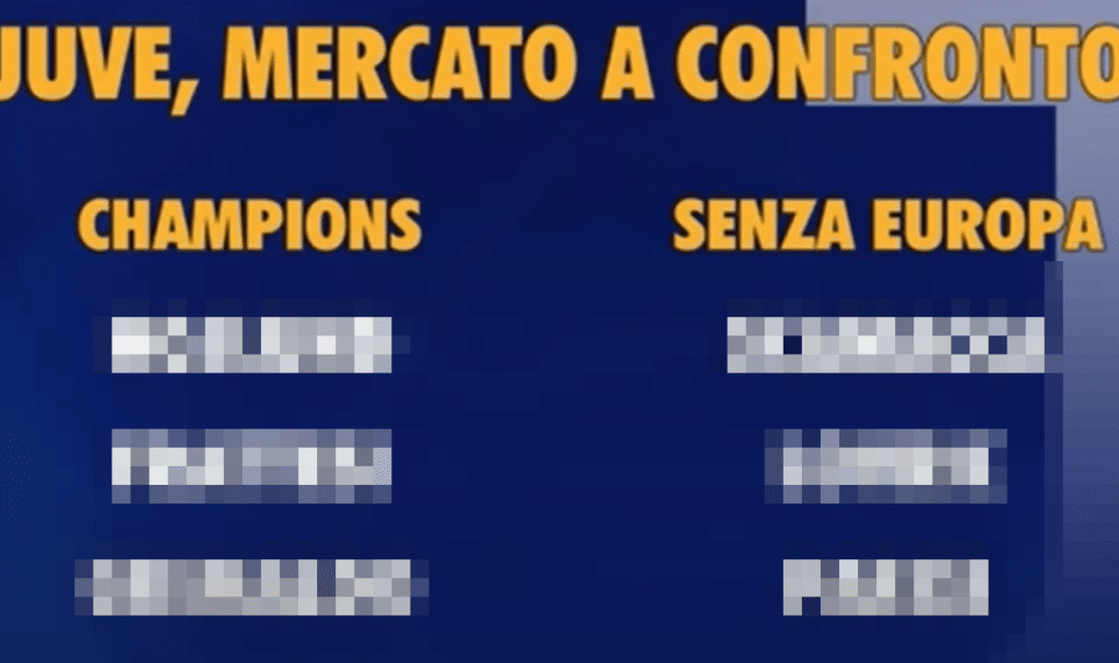 In questo senso oggi abbiamo deciso di mostrarvi delle grafiche molto interessanti che hanno svelato in diretta su TeleLombardia dove hanno fatto il punto della situazione proprio su questo. Sui calciatori che arriverebbero nel caso di una qualificazione in Champions e sui giocatori che invece la Juve andrebbe a pescare nel caso in cui i bianconeri dovessero restare fuori. E allora, scorriamo la lista scoprendo via via tutti i nomi <<<