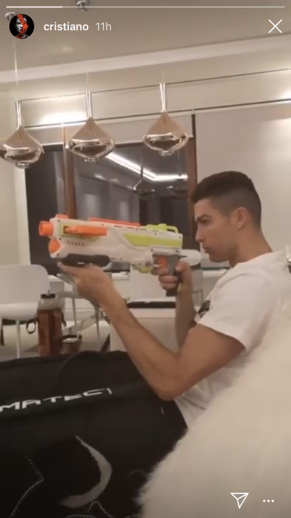 Ronaldo ritorna bambino e si diverte con il Nerf