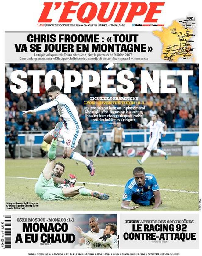 TORINO – Impossibile non ammirare la prestazione di Gigi Buffon ieri contro il Lione, dopo le tante critiche ricevute una risposta da vero fenomeno. Anche l’Equipe questa mattina in prima pagina ha elogiato Buffon, che praticamente ha abbassato la saracinesca e non ha permesso ai transalpini di portare a casa un risultato positivo. “Stoppés net” il titolo dell’Equipe, ovvero “rete fermata” o per renderlo meglio “porta blindata” da Buffon, sempre più il numero uno dei numeri uno. E intanto Gigi stupisce tutti nell’intervista postpartita: CONTINUA A LEGGERE