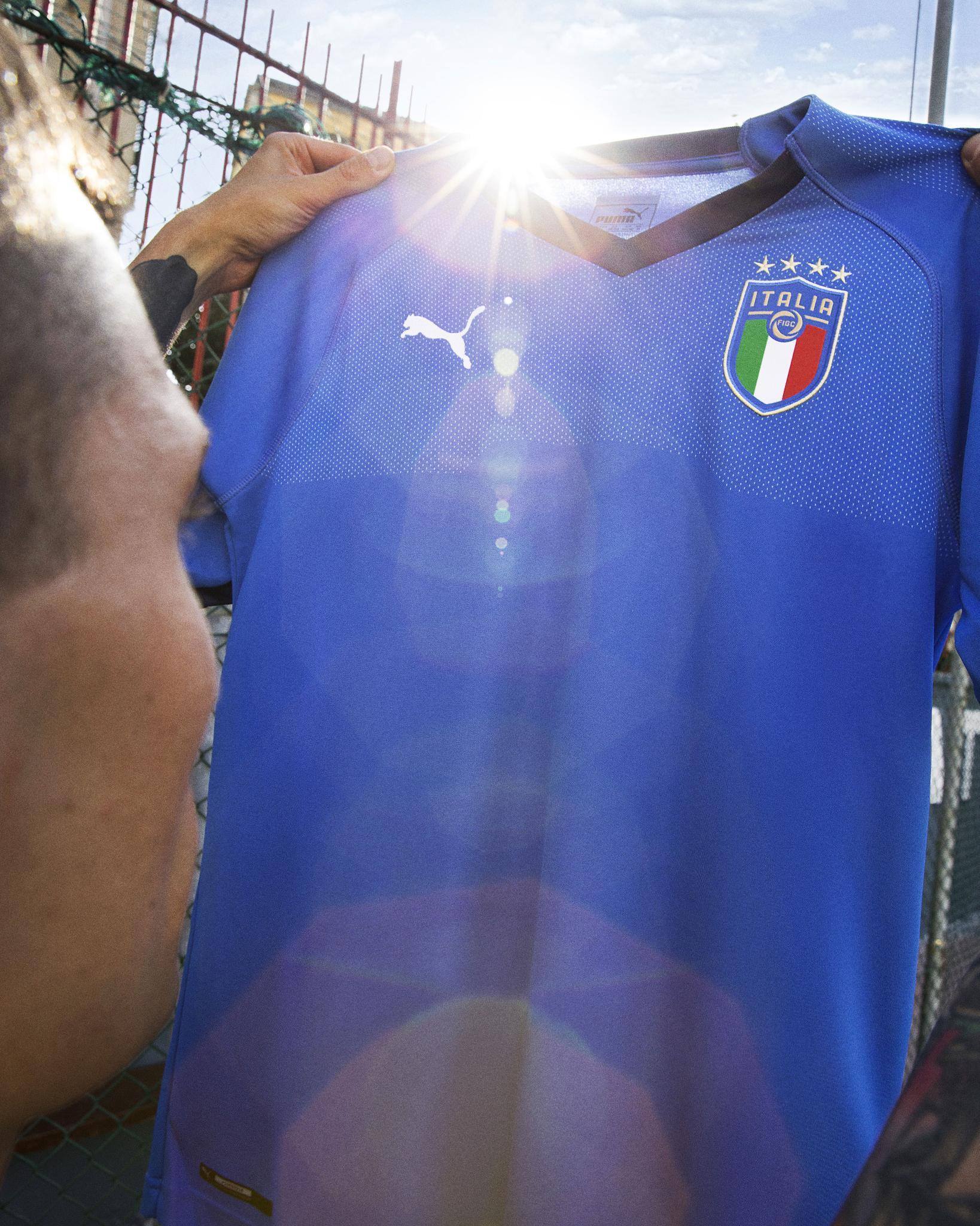 La Puma, in collaborazione con ‘Copa90’, ha rilasciato oggi quella che sarà la maglia ufficiale dell’Italia. Se gli Azzurri si qualificheranno finalmente per i Mondiali, questa sarà la maglia che indosseranno in Russia.