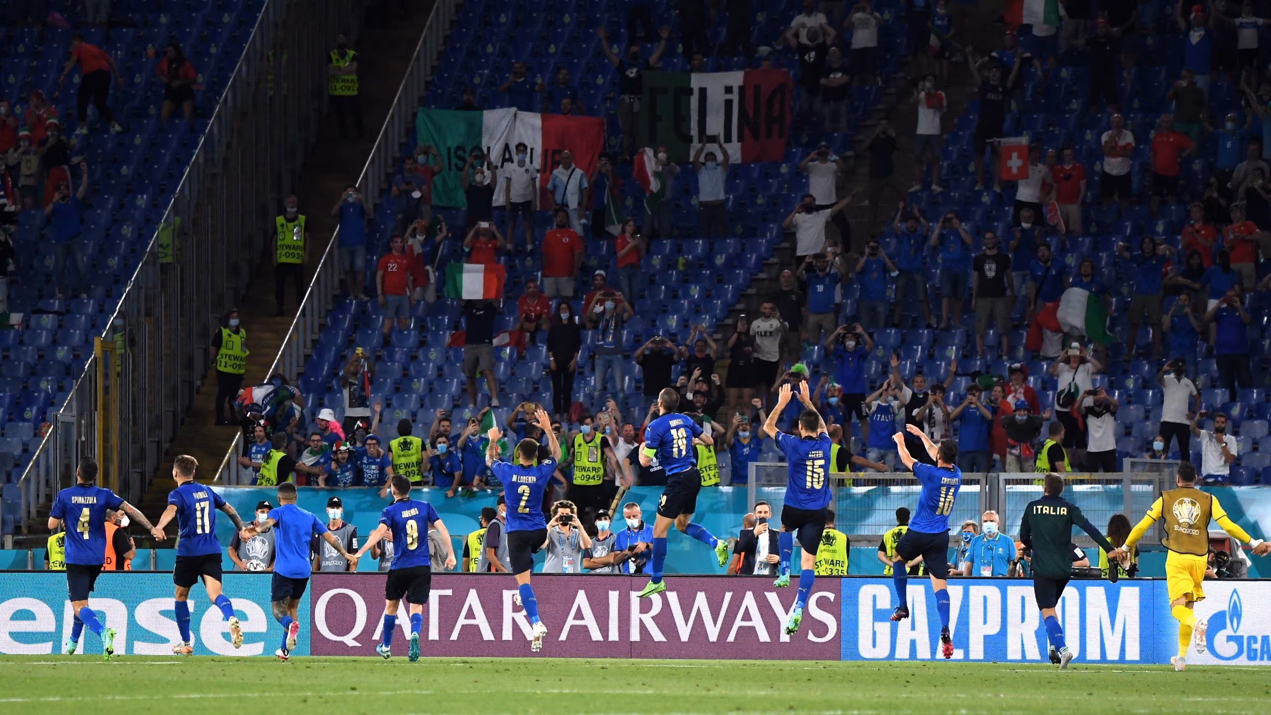 L’Italia di Roberto Mancini continua il suo cammino vincente all’Europeo, e dopo il 3-0 nella partita inaugurale contro la Turchia, si sbarazza della Svizzera con lo stesso risultato e strappa il pass per gli ottavi di finale con un turno di anticipo. Un altro risultato perentorio, con agli Azzurri sempre in controllo del match e a segno grazie al grande lavoro di squadra fatto da tutti: la doppietta di Manuel Locatelli e il gol di Ciro Immobile, che ha chiuso il risultato, testimoniano la bontà del lavoro di Mancini, che ha creato un gruppo che lotta e soffre insieme. Ottavi di finale già raggiunti quindi, e obiettivo primo posto alla portata: nella partita contro il Galles di domenica infatti, basterà un pareggio per passare come prima del girone.