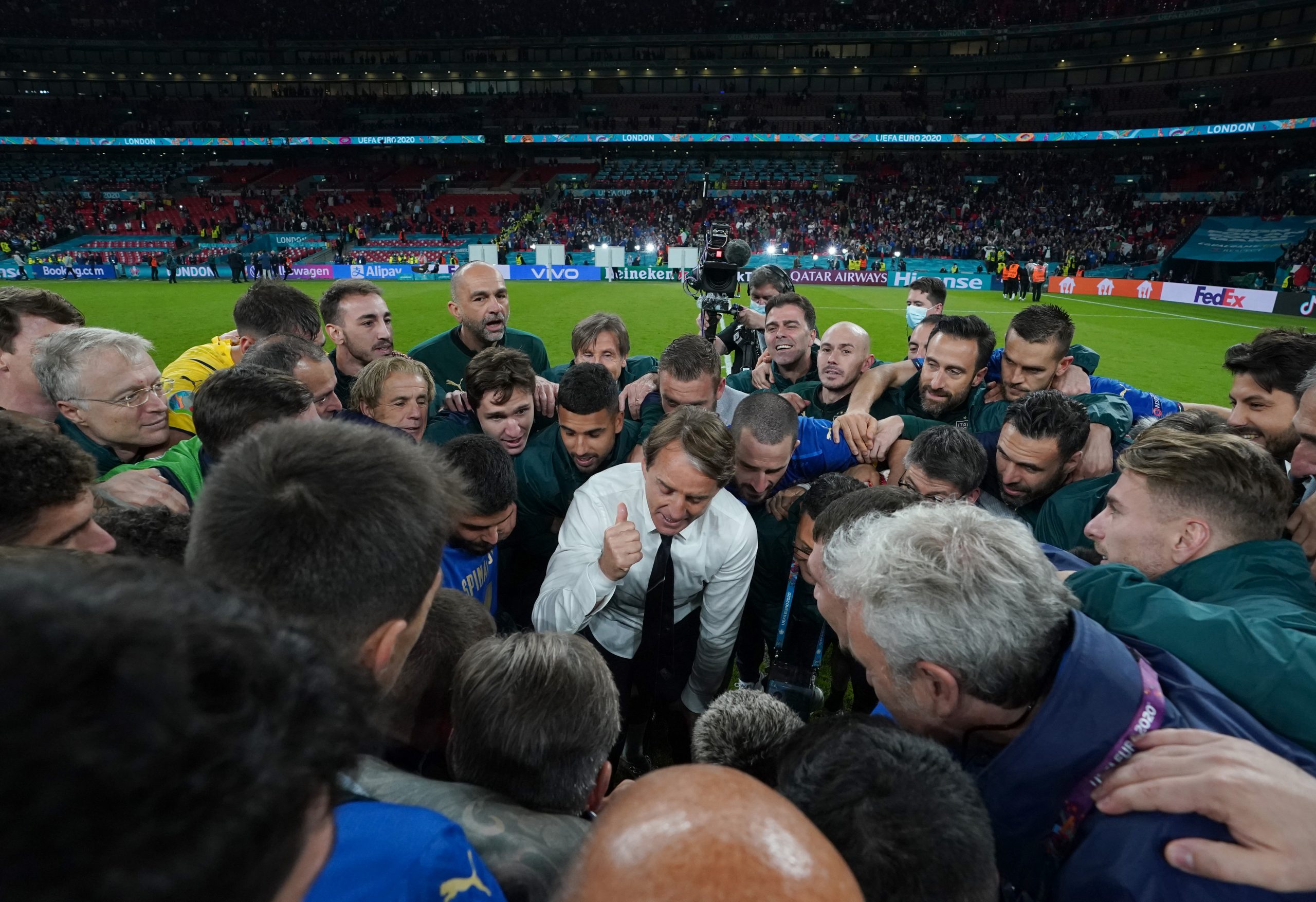 “Abbraccio con Vialli ? Era una partita difficilissima con l’Austria, sofferta. È stato un abbraccio liberatorio, un po’ come essere tornati indietro 30 anni. Le ultime due non sono state semplici ma quella era la prima a eliminazione diretta e per come si era messa è stata una partita davvero dura. Se vuoi arrivare in fondo a un torneo così, un Europeo o un Mondiale, in cui gli avversari sono tutti difficili da battere, devi adattarti a diverse situazioni. Non puoi pensare di vincere un mondiale o un europeo dominando. Ci sono partite in cui puoi soffrire perché le altre squadre sono forti. Ci sono momenti della partita in cui le cose non vanno come tu vorresti che andassero. Perché gli alti stanno facendo cose che tu non pensavi facessero. È chiaro che bisogna adattarsi”.
