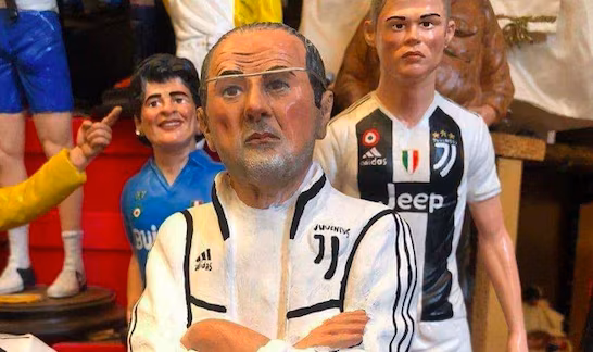 Il nuovo allenatore della Juventus è cosi subito finito nel presepe napoletano: il maestro presepista Marco Ferrigno di San Gregorio Armeno ha realizzato infatti una nuova statua, rappresentante l’ex tecnico del Napoli in abiti bianconeri, con la scitta “La voce del padrone” sulle spalle della felpa. Un altro artigiano, Genny Di Virgilio, ha invece rappresentato Sarri con in mano un sacchetto con su scritto “30 denari”, chiaro riferimento al tradimento di Giuda.