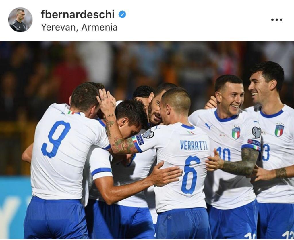 TORINO – Nella serata di ieri, l’Italia ha battuto l’Armenia per 3-1, ottenendo cosi il suo quinto successo in altrettante partite nella fase a gironi. In tanti, a fine partita hanno voluto manifestare il loro entusiasmo attraverso i social, giocatori compresi, uno di questi è stato l’esterno bianconero Federico Bernardeschi che, ha postato una foto di gruppo al termine del match. Quello che c’è di curioso pero in questo post, sta nel botta e risposta che il numero 33 ha avuto con una tifosa, la quale commentava così: “Se mi rispondi vado il primo giorno di scuola con il tuo nome scritto in faccia, con tanto di video”. Immediata la replica dell’ex Viola: “Ti ho pensato. Ora mi aspetto il video ( ma non fare arrabbiare il prof)”.
