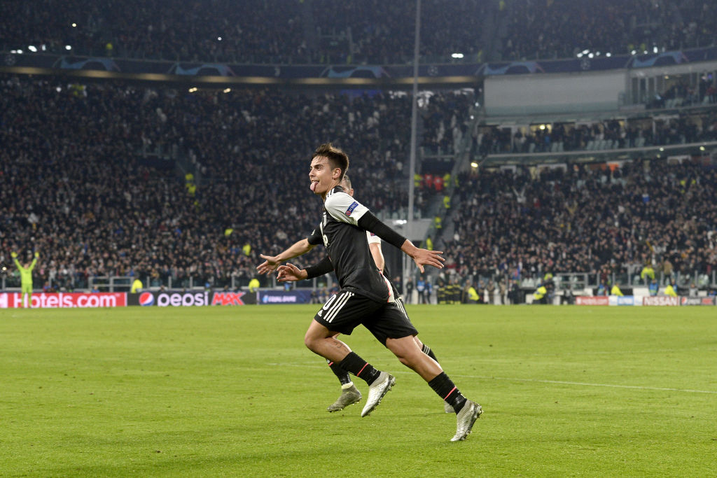 TURIN, ITALY - NOVEMBER 26: Paulo Dybala of Juventus celebrates after scoring the opening goal during the UEFA Champions League group D match between Juventus and Atletico Madrid at Allianz Stadium on November 26, 2019 in Turin, Italy (Photo by Filippo Alfero - Juventus FC/Juventus FC via Getty Images)