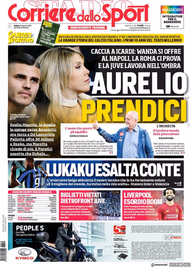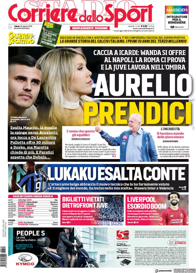 TORINO – Di seguito vi proponiamo l’apertura del quotidiano nazionale Corriere dello Sport di oggi, 12/08/2019, disponibile in tutte le edicole.