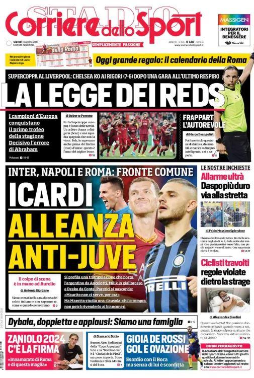TORINO – Di seguito vi proponiamo l’apertura del quotidiano nazionale Corriere dello Sport di oggi, 18/08/2019, disponibile in tutte le edicole.