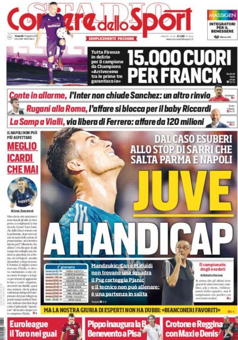 TORINO – Di seguito vi proponiamo l’apertura del quotidiano nazionale Corriere dello Sport di oggi, 23/08/2019, disponibile in tutte le edicole.