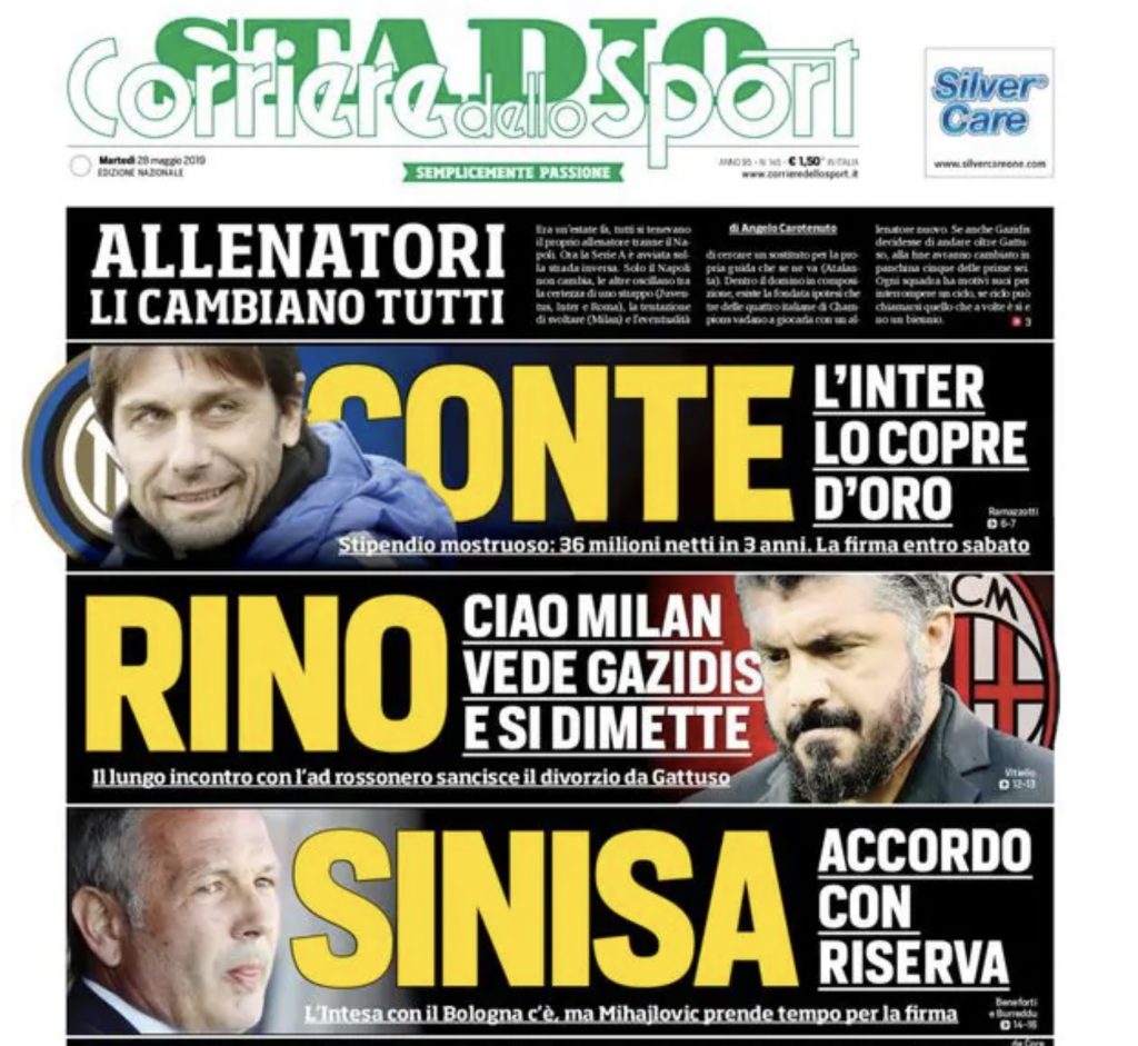 La prima pagina del quotidiano sportivo.