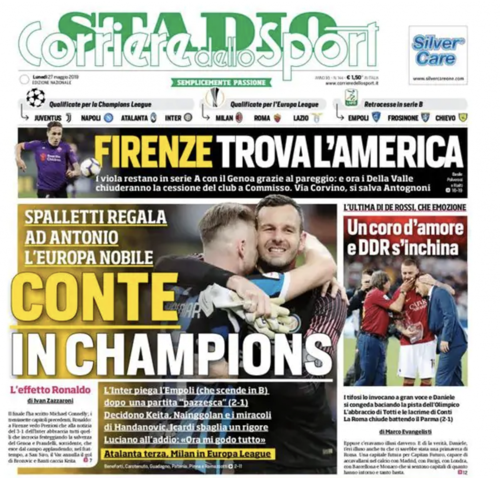 L'apertura odierna del quotidiano sportivo.