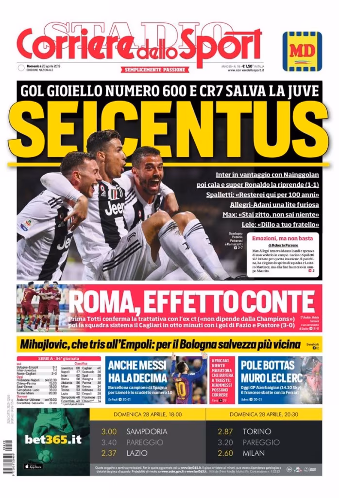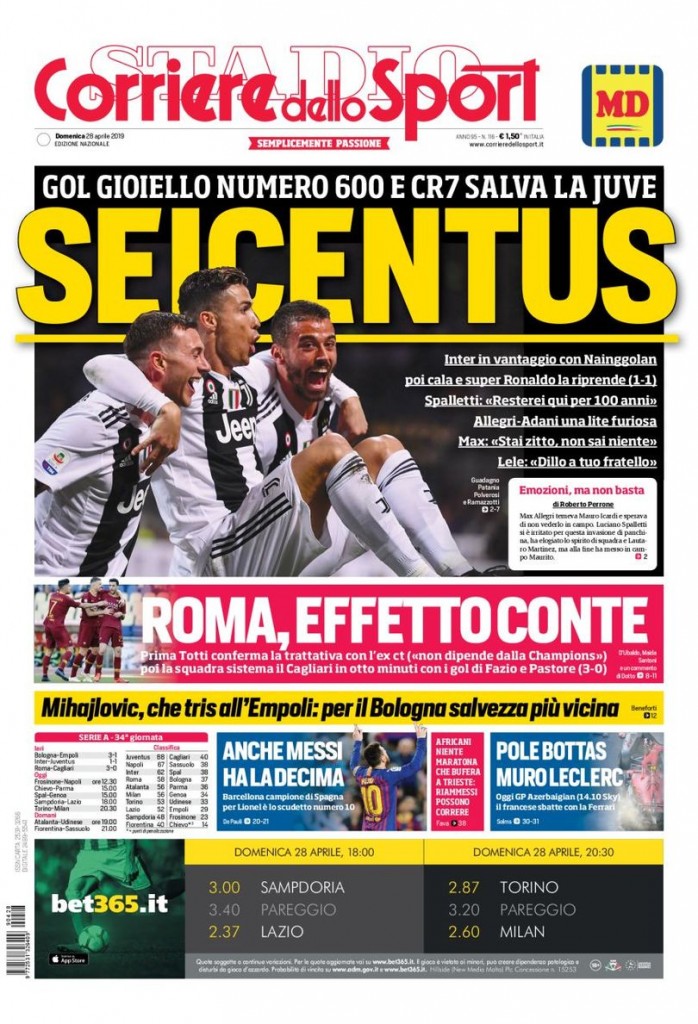 Di seguito la prima pagina del Corriere dello Sport.
