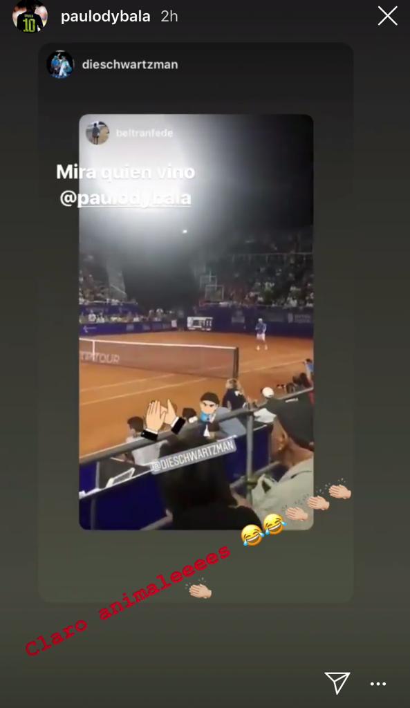 dove fino a questo momento ha totalizzato 2 gol. Diversa l’avventura europea invece che lo vede in testa alla classifica cannonieri tra i bianconeri, a quota 5 gol. Proprio la Joya, si sta rendendo protagonista sui social in queste ore, tramite una storia condivisa sulle sue Instagram Story, che immortalano un video del tennista argentino Scwartzmann, amico di Dybala, con scritto: ” Guarda chi è venuto”, riferendosi proprio a se stesso che ha assistito alle ATP di tennis. In attesa di vederlo presto in campo e nelle condizioni che tutti conosciamo, la Juve pensa al prossimo colpo di mercato.>>> CONTINUA A LEGGERE