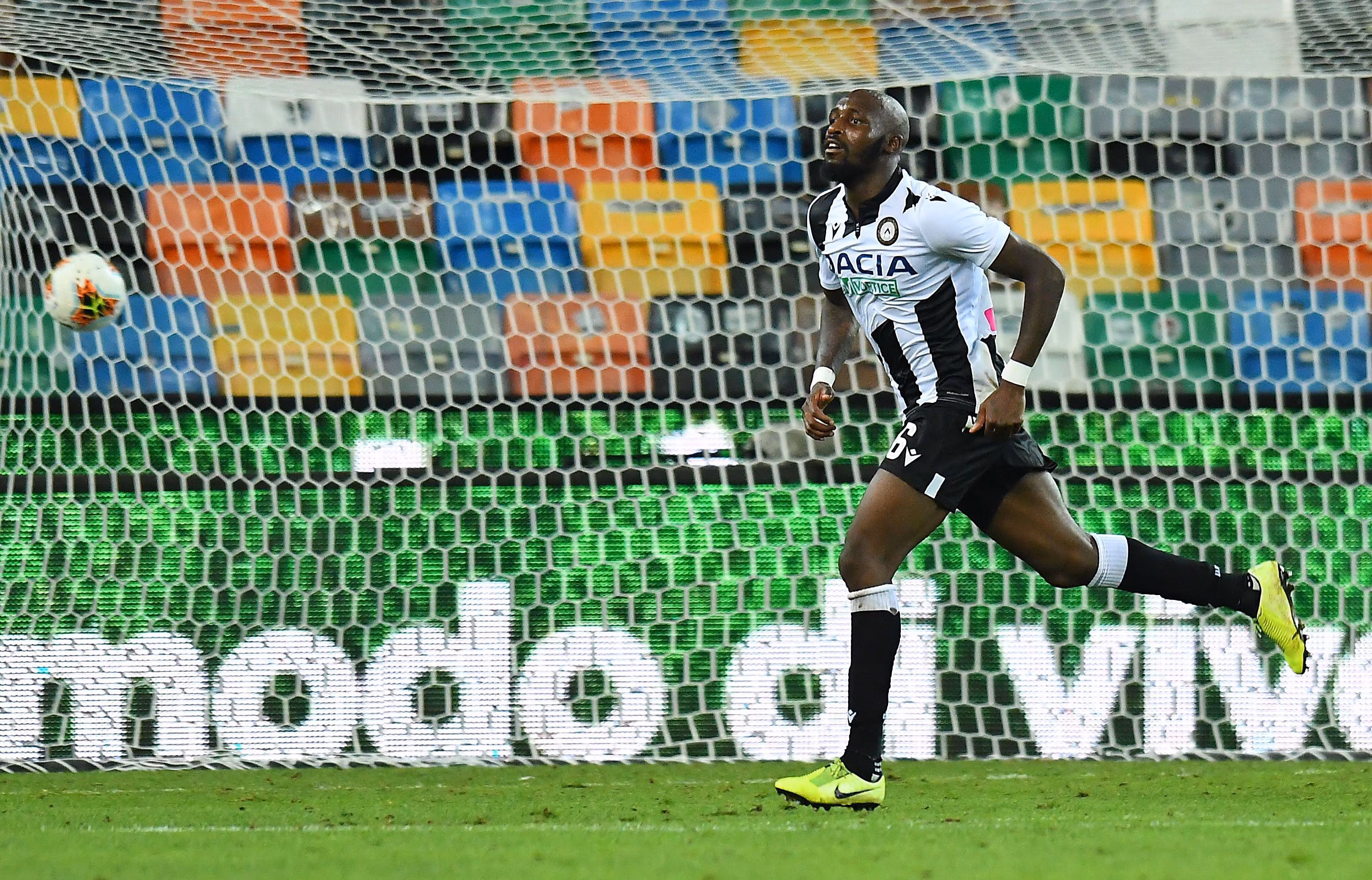 UDINE, ITALY - JULY 23: Seko Fofana of Udinese Calcio celebrates after scoring his team second goal during the Serie A match between Udinese Calcio and Juventus at Stadio Friuli on July 23, 2020 in Udine, Italy. (Photo by Alessandro Sabattini/Getty Images)
