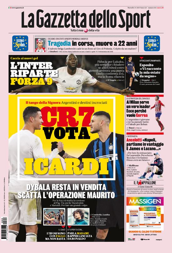 TORINO – Di seguito vi proponiamo l’apertura del quotidiano nazionale La Gazzetta dello Sport di oggi, 06/08/2019 disponibile in tutte le edicole.