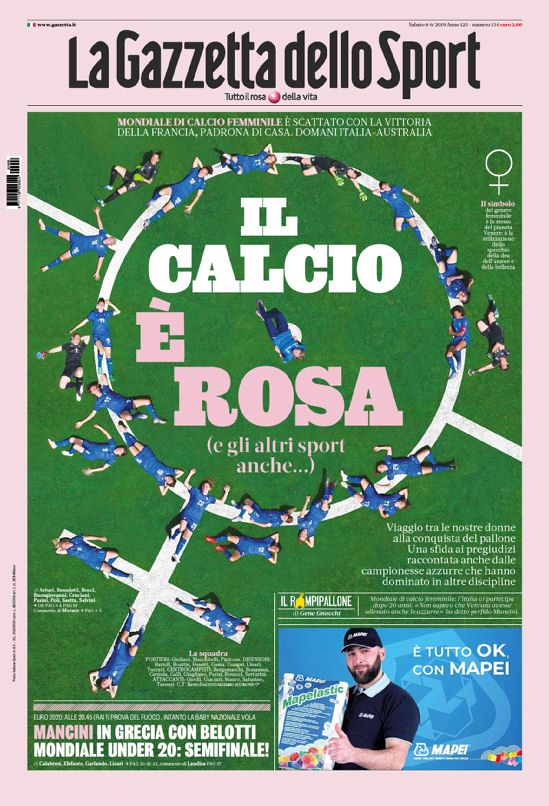 TORINO – Di seguito l’apertura del quotidiano nazionale La Gazzzetta dello Sport di oggi, 04/06/2019. In apertura la questione relativa all’inizio dei Mondiali di Calcio femminile, con la vittoria della Francia padrona di casa all’esordio. Domani poi, toccherà alle azzurre che sono pronte a stupire tutti.