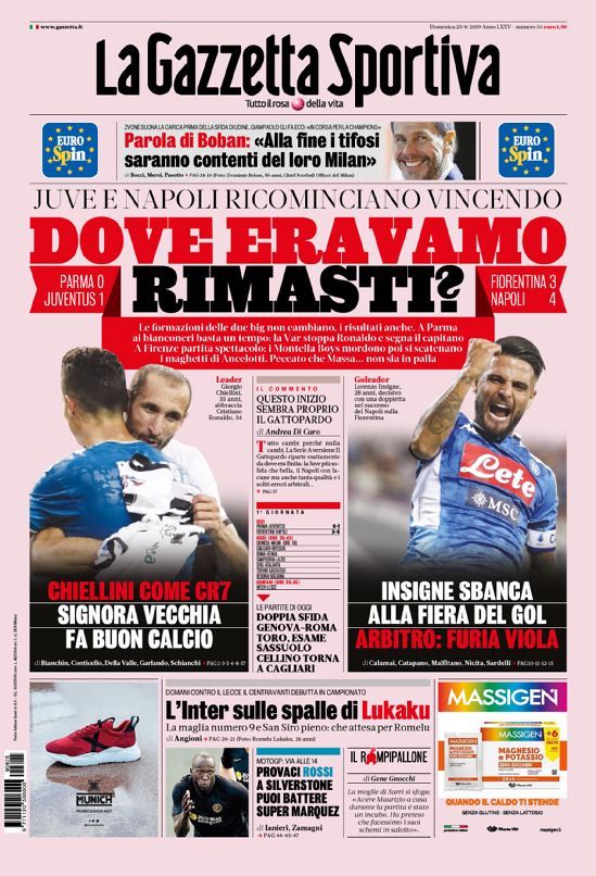 TORINO – Di seguito vi proponiamo l’apertura del quotidiano nazionale La Gazzetta dello Sport di oggi, disponibile in tutte le edicole.