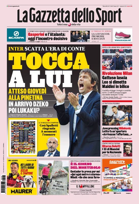 La prima pagina del quotidiano sportivo.