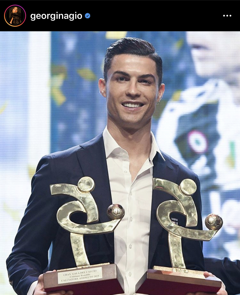 TORINO – Dopo la mancata assegnazione del Pallone d’Oro a Cristiano Ronaldo, in tanti si sono stretti attorno al portoghese con dei messaggi di consolazione e, inevitabilmente non poteva mancare anche la dedica della sua compagna Georgina Rodriguez. La showgirl ha scelto il suo account Instagram, pubblicando una foto di CR7 con i premi vinti ieri sera all’AIC e sotto la seguente dedica.