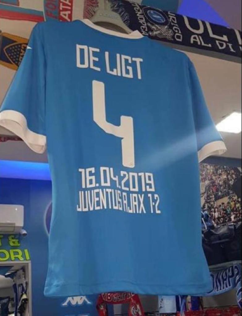 Sta girando infatti una foto sui social, che immortala alcune maglie del Napoli all’interno di uno store partenopeo, con scritto cognome e numero del secondo marcatore della gara, ovvero: “De Ligt 4”. Più in basso è riportata la data con i nomi delle due sfidanti: “16/04/2019 Juventus-Ajax”. E nel frattempo in casa bianconera si pensa ad una rivoluzione totale, dopo la delusione arriva l’annuncio: “Addio Juve, partiranno loro!” >>>VAI ALLA NOTIZIA