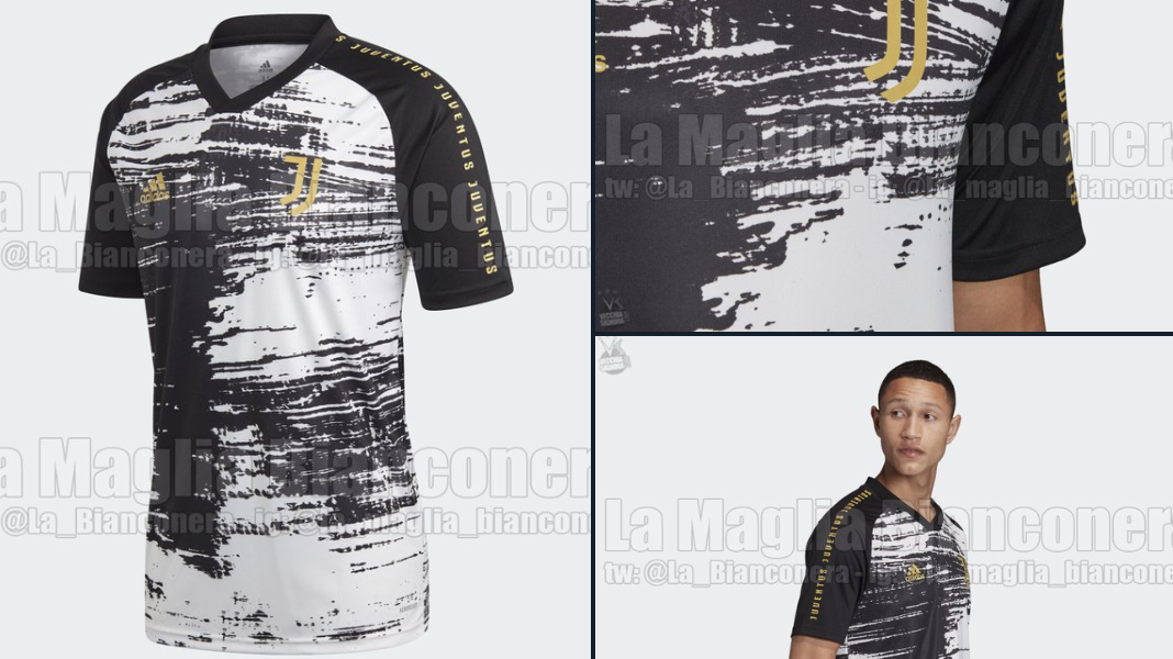 La maglia si presenta bianca con le maniche nere e pennellate nere sul corpo, con il logo Adidas e quello bianconero in oro, così come le scritte Juventus che corrono lungo le due maniche.