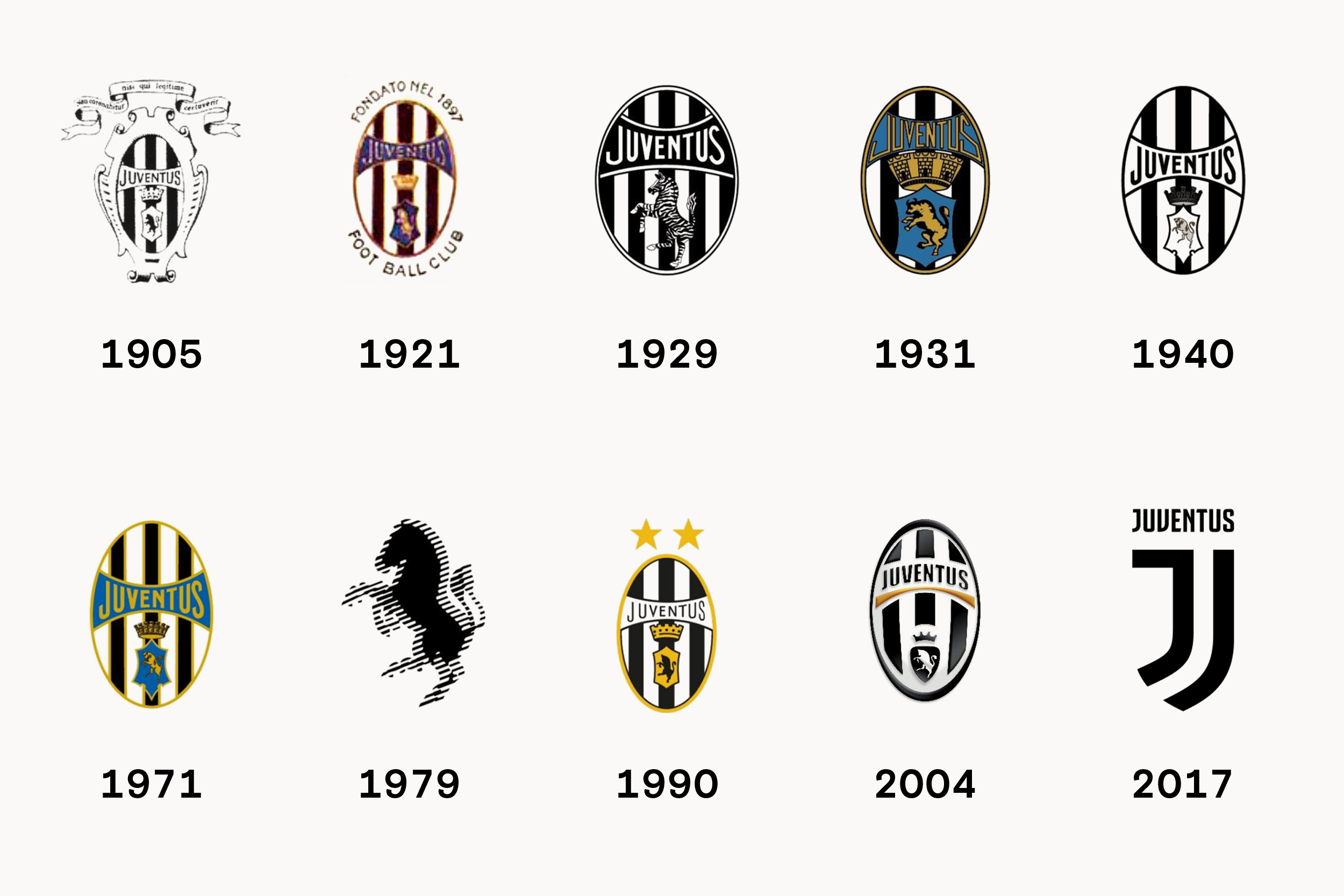Sono stati 10 in tutto gli stemmi utilizzati dalla squadra bianconera nel corso della sua storia, con cambiamenti cromatici e di forma.