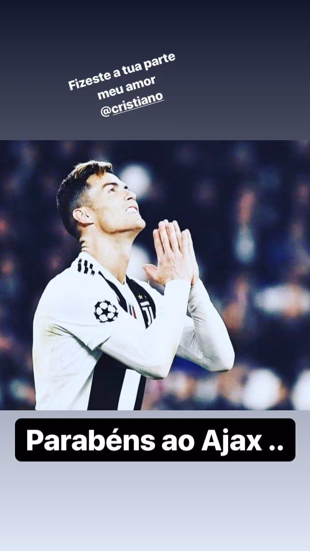 Non basta ai bianconeri il gol iniziale di Cristiano Ronaldo. Katia Alveiro, sorella di Cr7 consola il fratello dopo la sconfitta attraverso delle stories su Instagram: “Tu hai fatto la tua parte, amore mio. E complimenti all’Ajax”. Da parte sua il portoghese non si è ancora espresso dopo la cupa serata di Torino, ma il mancato passaggio avrà lasciato l’amaro in bocca.