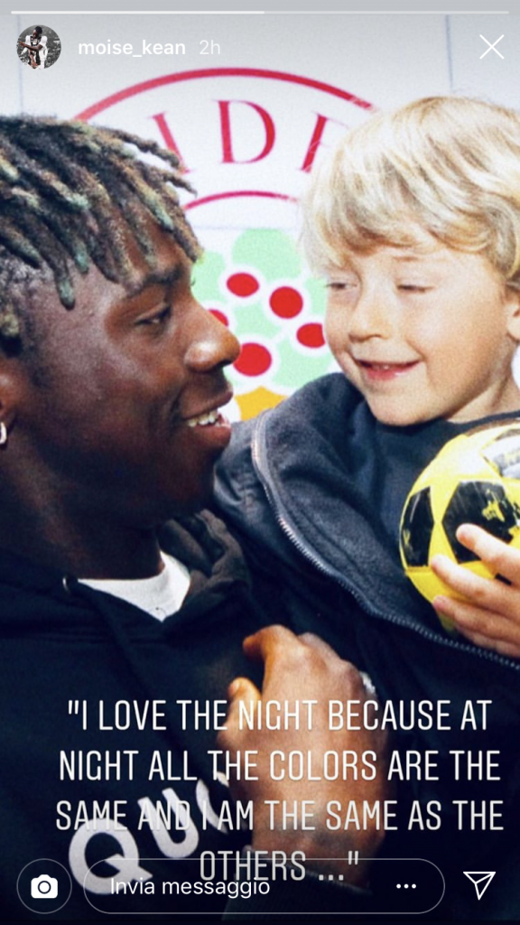 Moise Kean risponde ancora alle accuse razziste dopo gli avvenimenti di ieri a Cagliari.