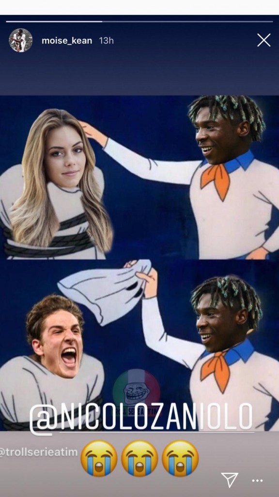 TORINO – Moise Kean nel ritiro della Nazionale Under 21 con una ragazza in mutande sul letto? No, si trattava solo di Zaniolo come precisato qualche storia successiva dallo stesso attaccante della Juventus. Poco fa il numero 14 ha pubblicato un altra Instagram Story in cui scherza sull’accaduto.