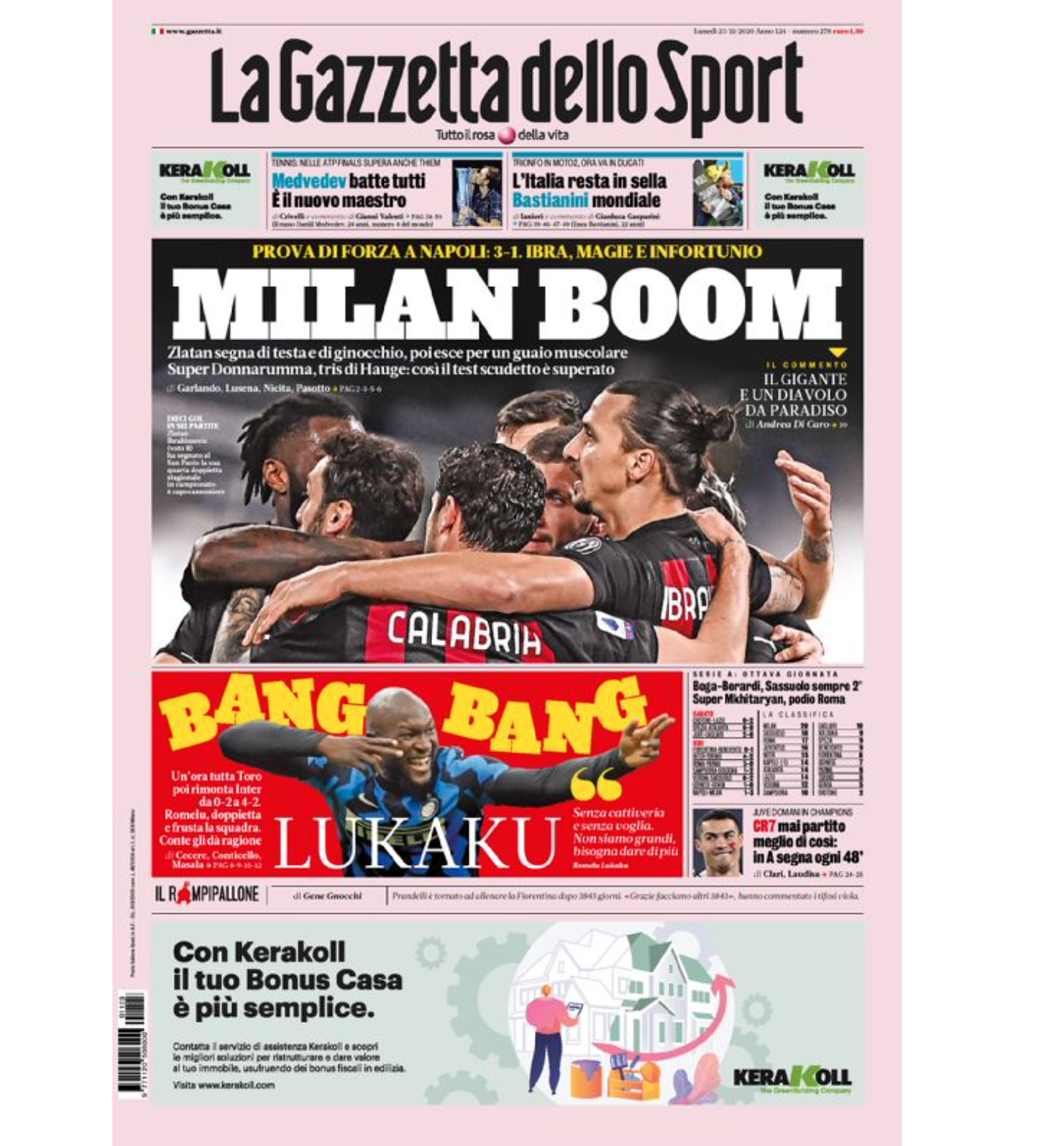 TORINO – La prima pagina de La Gazzetta dello Sport in edicola oggi dedica la sua apertura alle milanesi, entrambe vittoriose nella giornata di ieri contro il Torino e in Napoli.