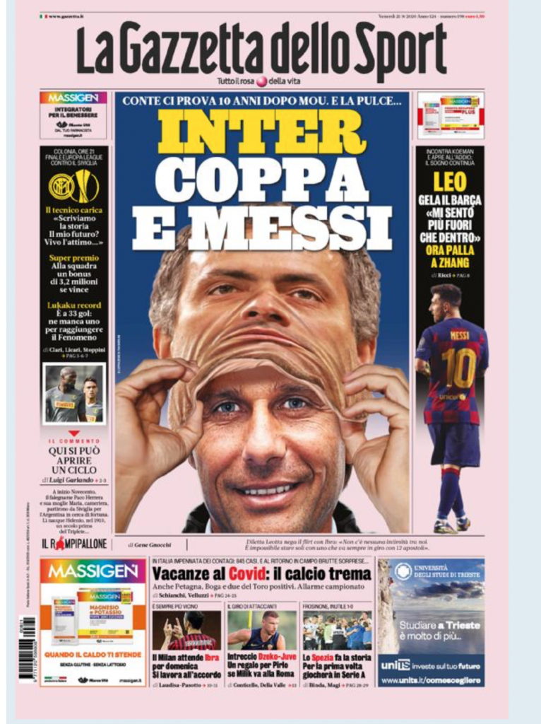TORINO – La prima pagina de La Gazzetta dello Sport in edicola oggi è dedicata all’Inter e alla finale di Europa League che disputeranno i nerazzurri.