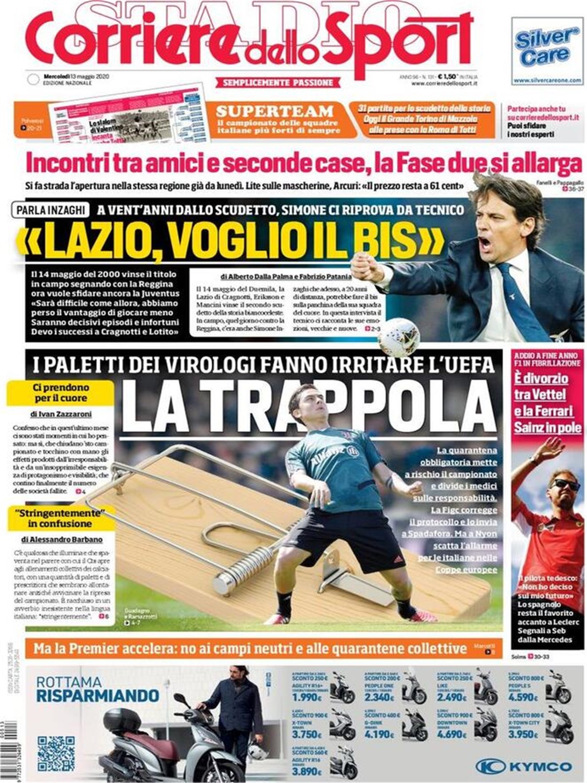 TORINO – La prima pagina del Corriere dello Sport intitola così: “La trappola”. Il riferimento è alla quarantena obbligatoria che mette a rischio il campionato e divide i medici sulle responsabilità. La FIGC corregge il protocollo e lo invia a Spadafora, ma a Nyon scatta l’allarme per le italiane nelle coppe europee.