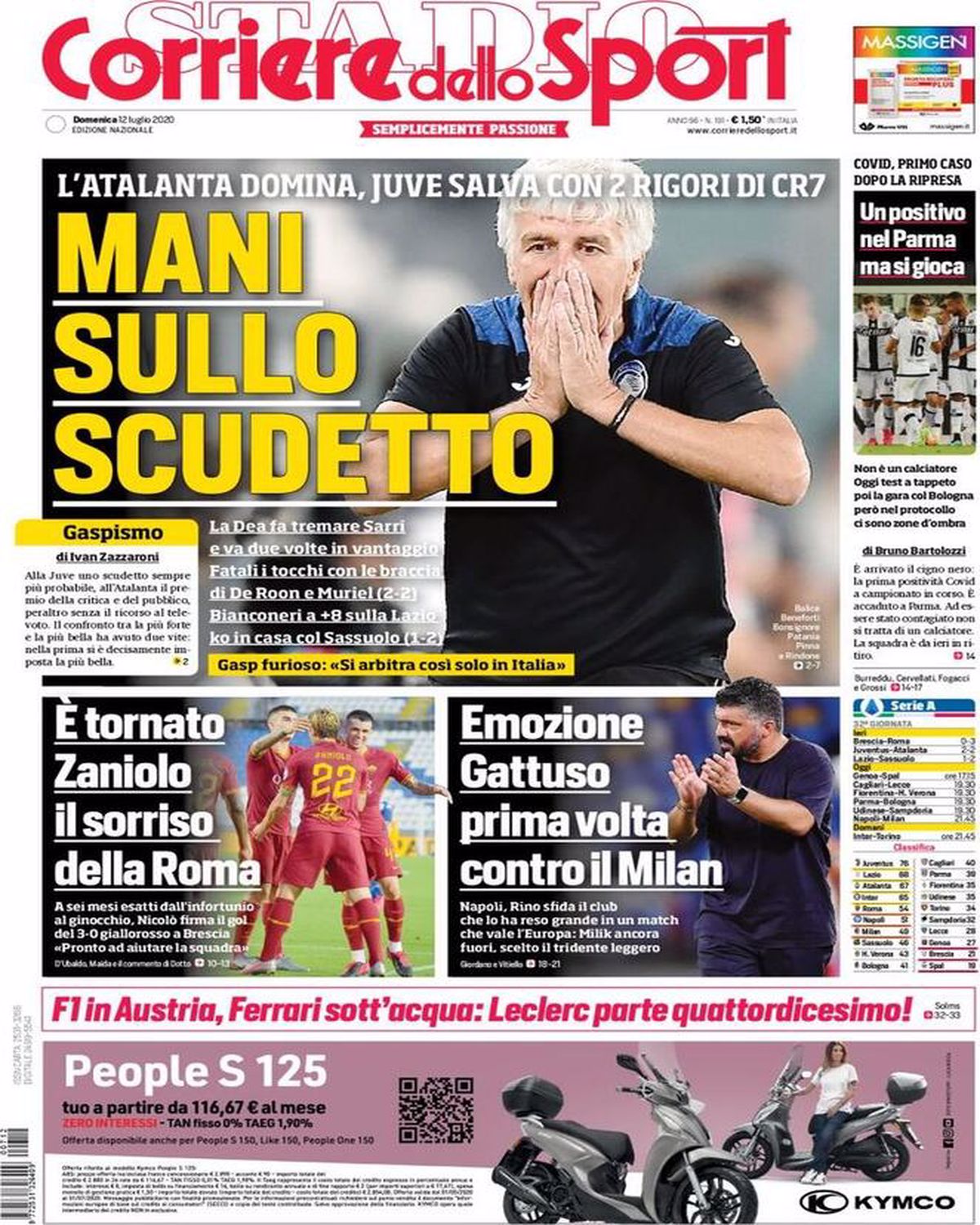 TORINO – La prima pagina del Corriere dello Sport intitola così: “Mani sullo scudetto”. Il riferimento è ai due rigori assegnati alla Juventus per tocchi di mano dei giocatori dell’Atalanta che gli hanno permesso di pareggiare in extremis la partita.