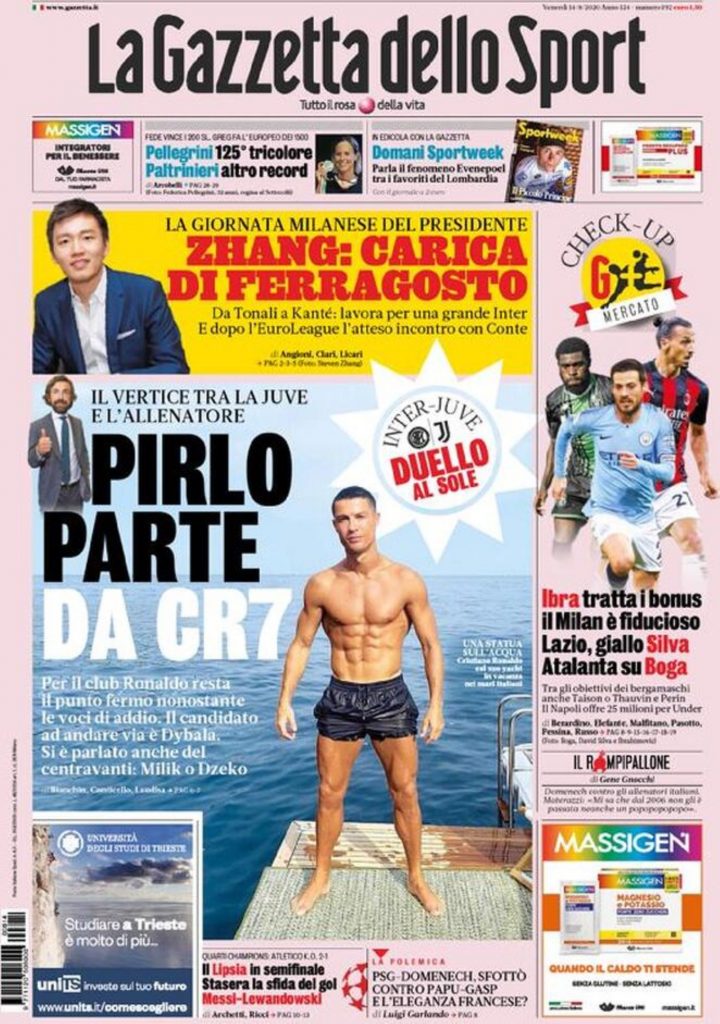 TORINO – La prima pagina odierna della Gazzetta dello Sport titola: “Pirlo parte da Cr7”, in riferimento al nuovo allenatore della Juventus, che dovrà partire ricostruendo la fiducia attorno al portoghese. Ma attenzione perché, proprio in giornata, è arrivata anche una grandissima novità per il mercato bianconero. Pirlo tira dritto, ha già scelto il prossimo colpo: lo vuole a tutti i costi! >>>VAI ALLA NOTIZIA