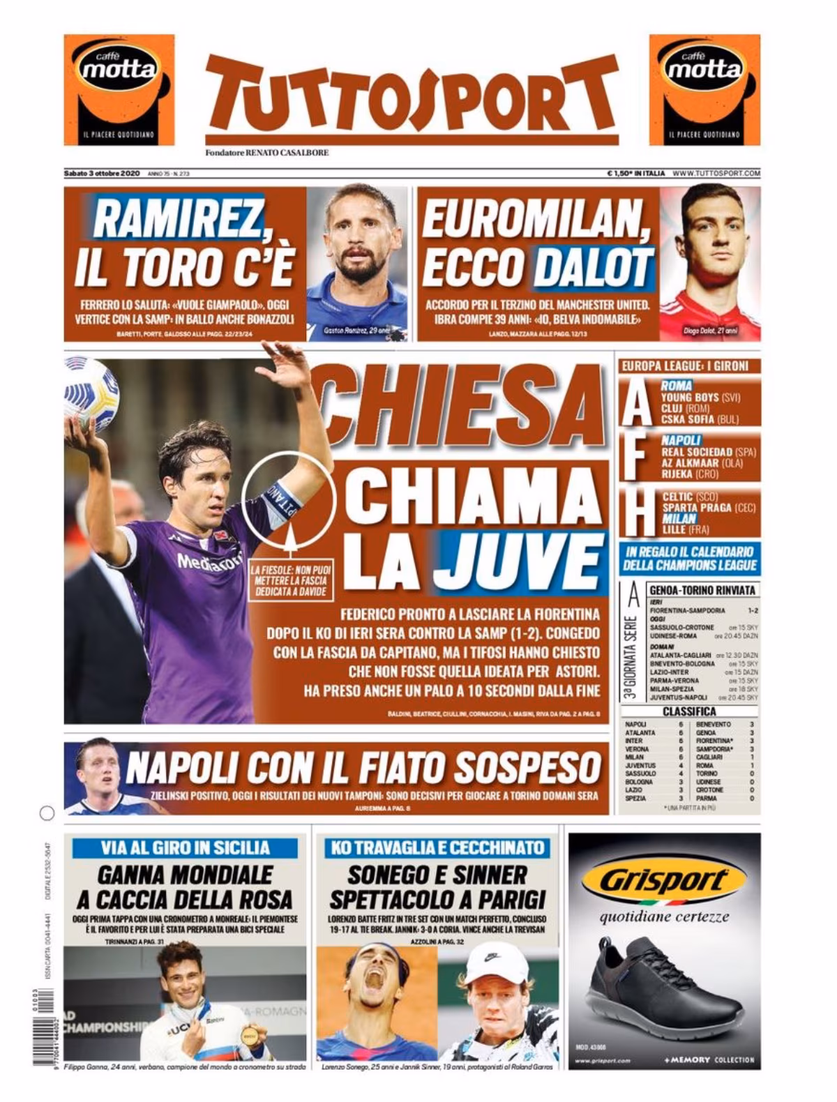 Al centro infatti si parla dei bianconeri e dell’affare Chiesa: “Federico pronto a lasciare la Fiorentina dopo il ko di ieri sera contro la Samp. Congedo con la fascia da capitano ma tifosi hanno chiesto che non fosse quella ideata per Astori.