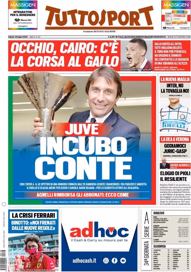 Nel taglio in basso si parla del rimborso degli abbonati all’Allianz Stadium.