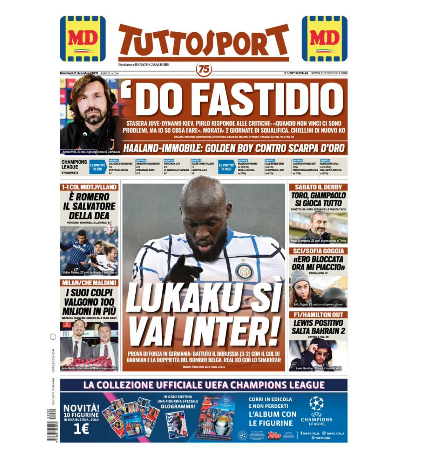 TORINO – La prima pagina di Tuttosport in edicola questa mattina è dedicata nel suo taglio alto alla Juventus e ad Andrea Pirlo: “Do fastidio” le Paole del tecnico che aggiunge “Quando non vinci ci sono problemi ma io so cosa fare”.