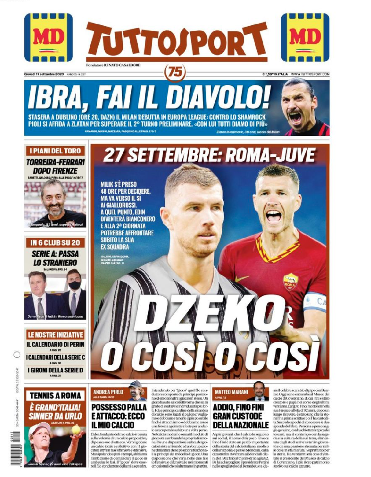 Oggi dovrebbe essere infatti il giorno del passaggio di Edin Dzeko in bianconero: “Dzeko o così o così. Milik si è preso 48 ore per decidere, ma va verso il sì ai giallorossi. A quel punto Edin diventerà bianconero e alla seconda giornata potrebbe affrontare subito la sua ex squadra.”