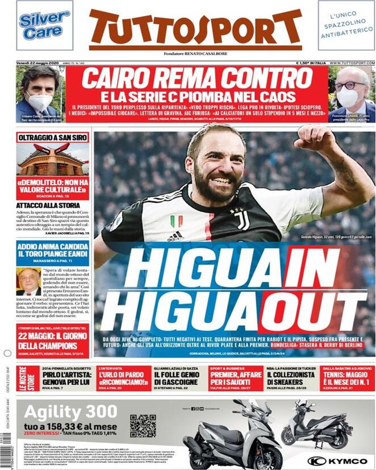 TORINO – La prima pagina di Tuttosport intitola così: “Higuain Higuaout”. Da oggi Juve al completo: tutti negativi ai test, quarantena finita per Rabiot e Higuain che è sospeso tra presente e futuro. Per l’argentino ci sono anche gli USA all’orizzonte e non solo il River Plate.
