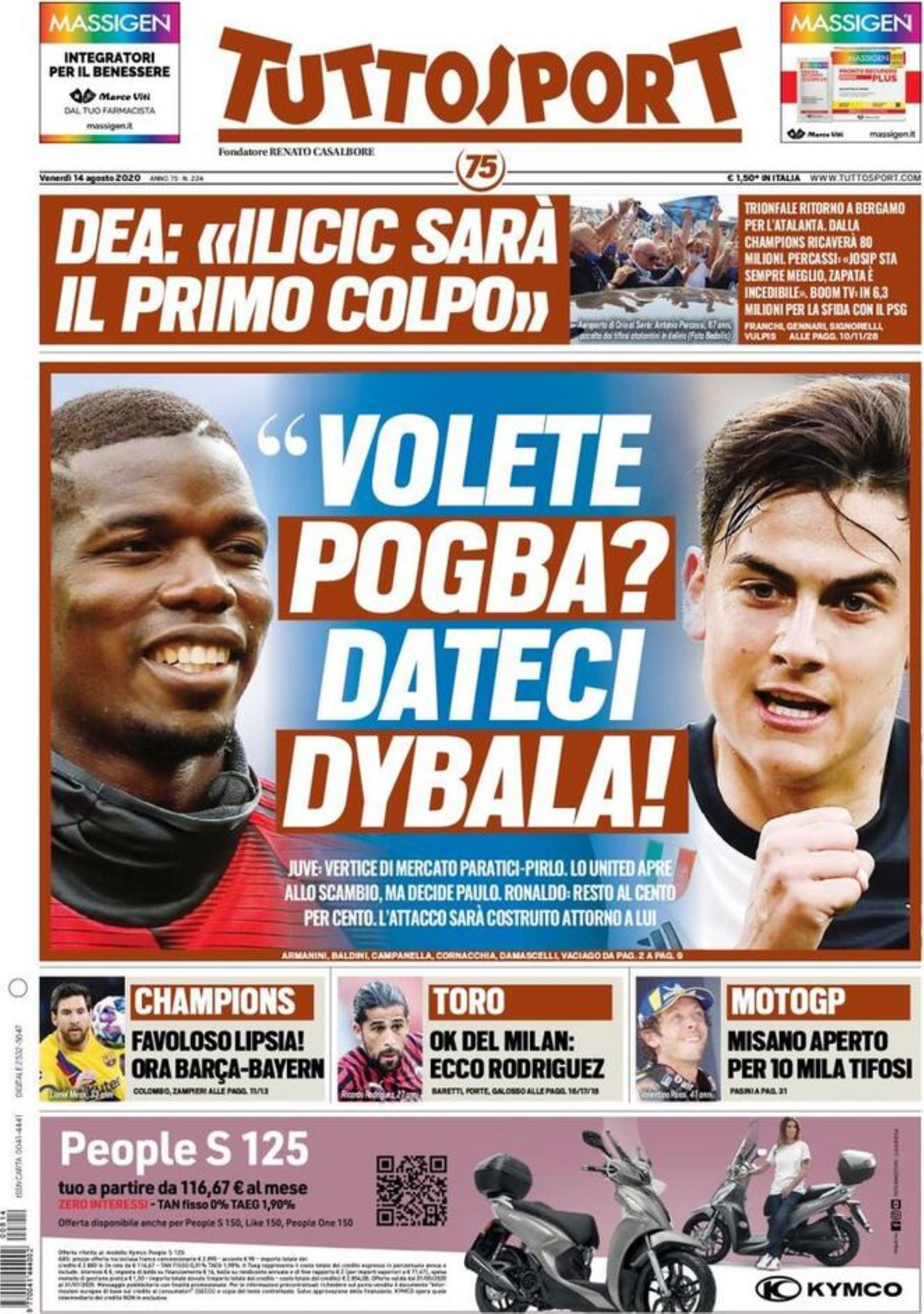 TORINO- Si apre con il titolo “Volete Pogba? Dateci Dybala” la prima pagina di Tuttosport, in merito al possibile scambio tra Manchester United e Juventus, per i due campioni.