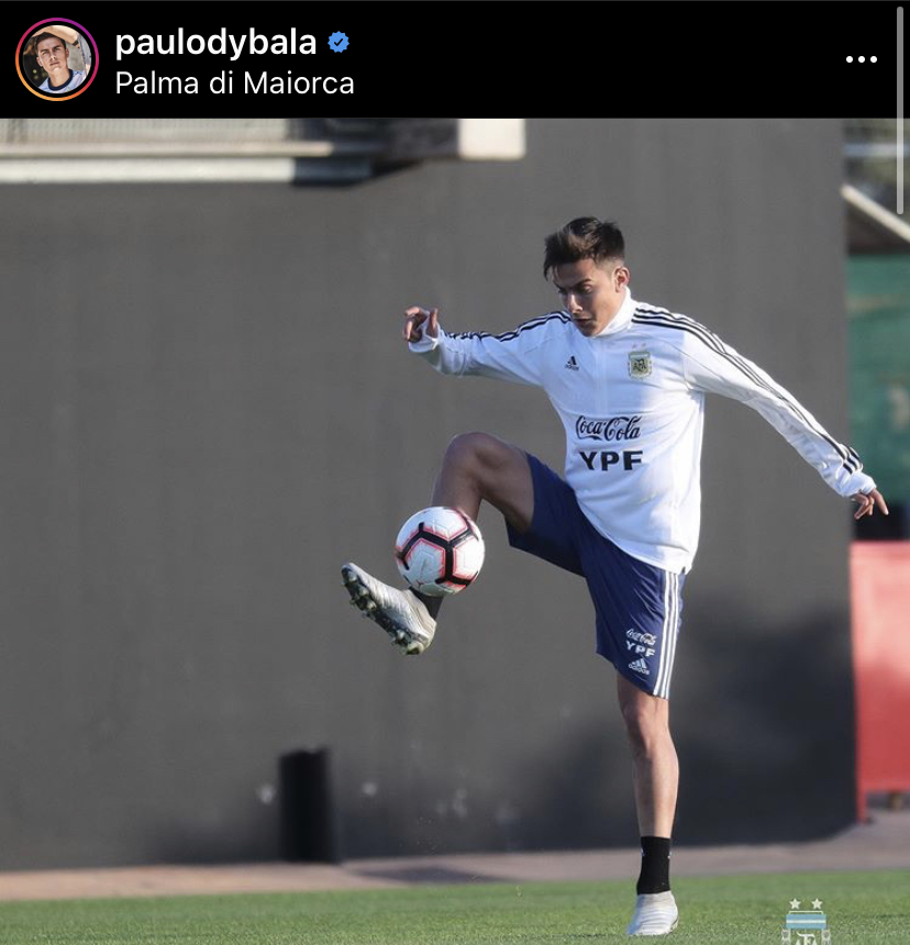 TORINO – Dopo aver conquistato la vittoria con il Milan e ottenuto così altri 3 punti, importantissimi per ritornare in vetta, i giocatori bianconeri sono ora volati dalle loro rispettive Nazionali per le gare di qualificazione. Intanto, proprio dal ritiro dell’Argentina, il numero 10 bianconero Paulo Dybala, ha postato una foto sul suo account Instagram, la quale lo immortala intento a stoppare un pallone al volo, con il suo piede meno preferito, il destro. Prontissimo il commento del suo ex compagno ed amico, Claudio Marchisio che, ha voluto ironizzarci su rispondendo così: “Bravo, finalmente questo piede destro sta migliorando”. Ovviamente il tutto é stato scritto in maniera sarcastica, la quale conferma l’ottimo rapporto che corre tra i due.