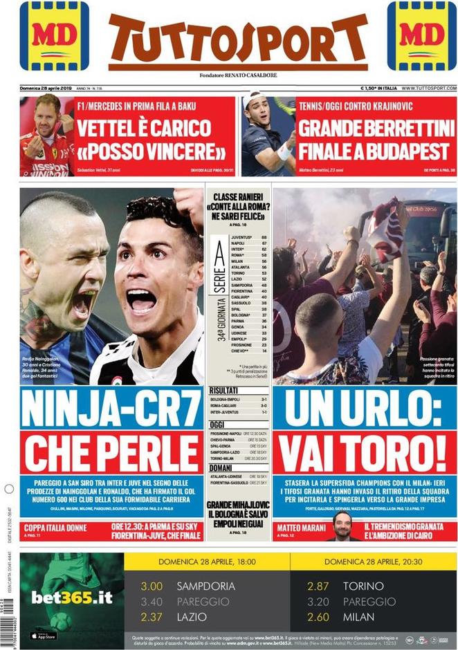 Di seguito la prima pagina del quotidiano Tuttosport.