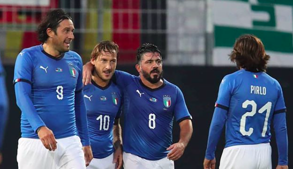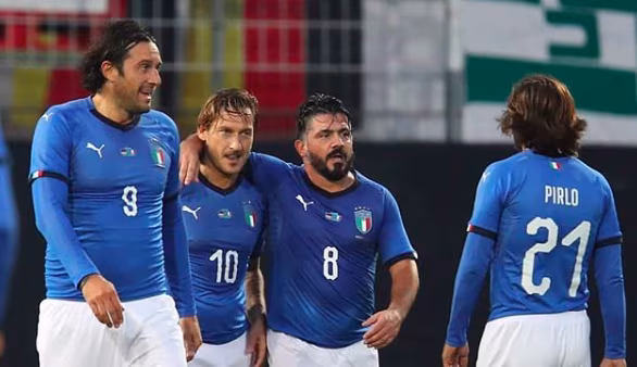 La partita, terminata tre a tre, è stata una parata di stelle, e gli ormai ex giocatori hanno scherzato sul match tramite i loro account social. Il primo di tutti è stato Pirlo che ha postato una foto che lo ritrae di spalle andare verso Gattuso, Toni e Totti: “Più belli e più in forma di prima” ha scritto il centrocampista, scatenando le prese in giro e le risposte divertite degli ex compagni.