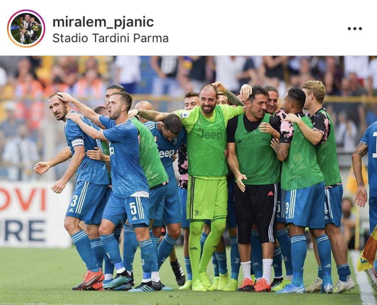 TORINO – Si è da poco conclusa la prima gara di questo nuovo campionato, inaugurato da Parma e Juve che, si sono date battaglia al Tardini. I bianconeri hanno avuto la meglio vincendo per 1-0, grazie ad un gol dell’insolito Chiellini. Al termine del match è stato Miralem Pjanic a buttare benzina sul fuoco, alimentando così gli animi per questa stagione che si preannuncia ricca di grande emozioni. Lo ha fatto attraverso un post pubblicato sul suo account Instagram, dove ha postato una foto che lo ritrae insieme ai compagni al termine del match e sotto di esso la seguente citazione: “ Gli scudetti non si vincono ad agosto. Cresceremo, ma oggi dovevamo dare il nostro segnale al campionato e non poteva essere diverso da questo”.