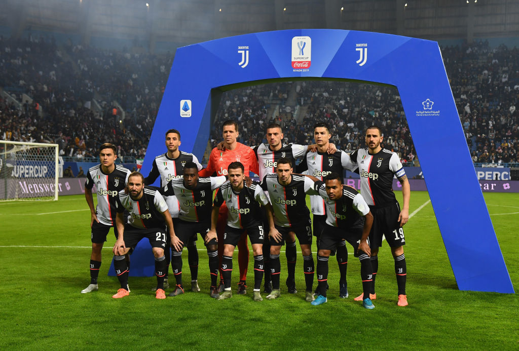RIYADH, SAUDI ARABIA - DECEMBER 22: Juventus players pose before the Italian Supercup match between Juventus and SS Lazio at King Saud University Stadium on December 22, 2019 in Riyadh, Saudi Arabia. (Photo by Claudio Villa/Getty Images for Lega Serie A)