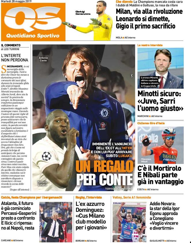 La prima pagina del quotidiano sportivo.