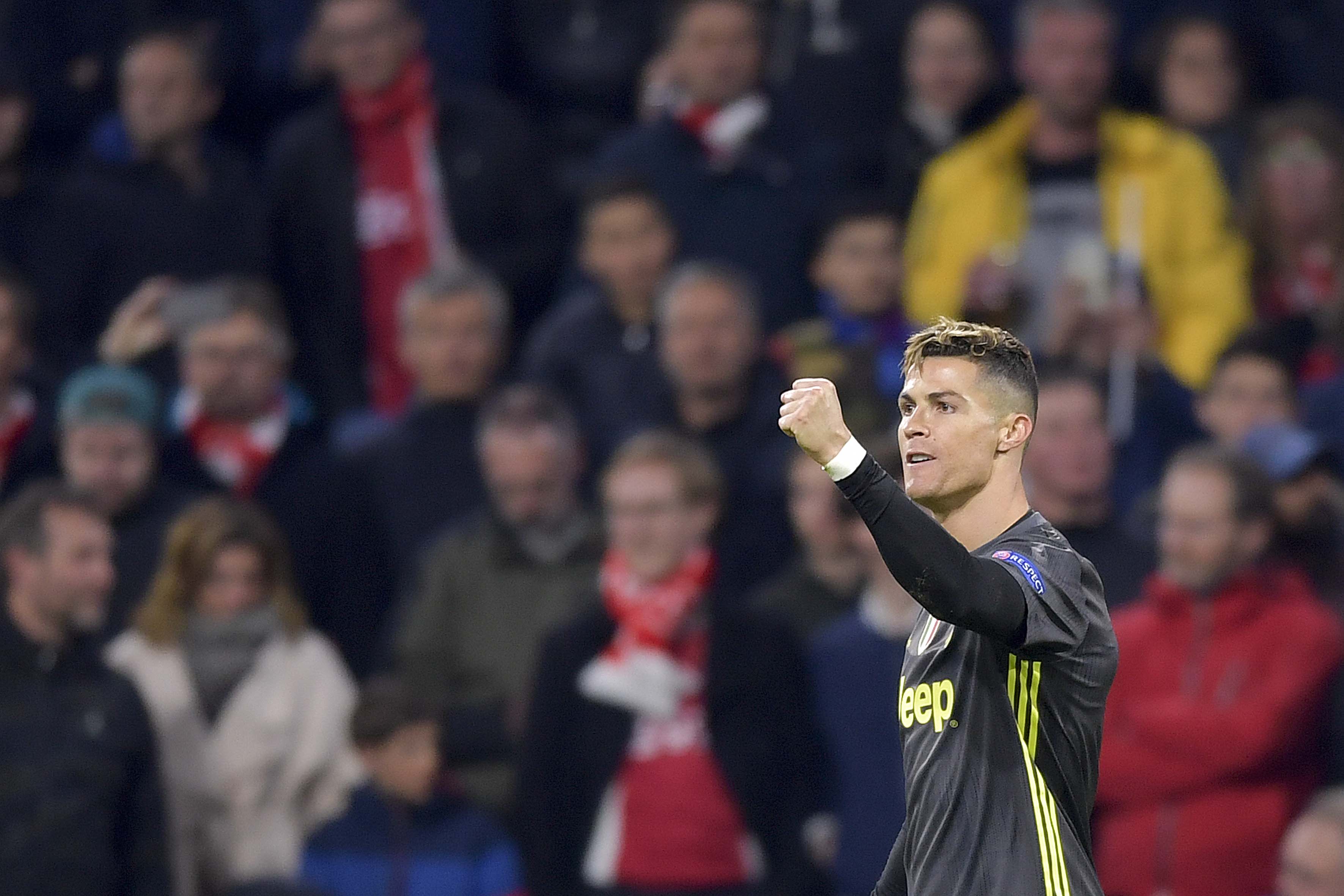 AMSTERDAM, NETHERLANDS - APRIL 10: Cristiano Ronaldo of Juventus celebrates after scoring the opening goal during the UEFA Champions League Quarter Final first leg match between Ajax and Juventus at Johan Cruyff Arena on April 10, 2019 in Amsterdam, Netherlands. (Photo by Daniele Badolato - Juventus FC/Juventus FC via Getty Images)