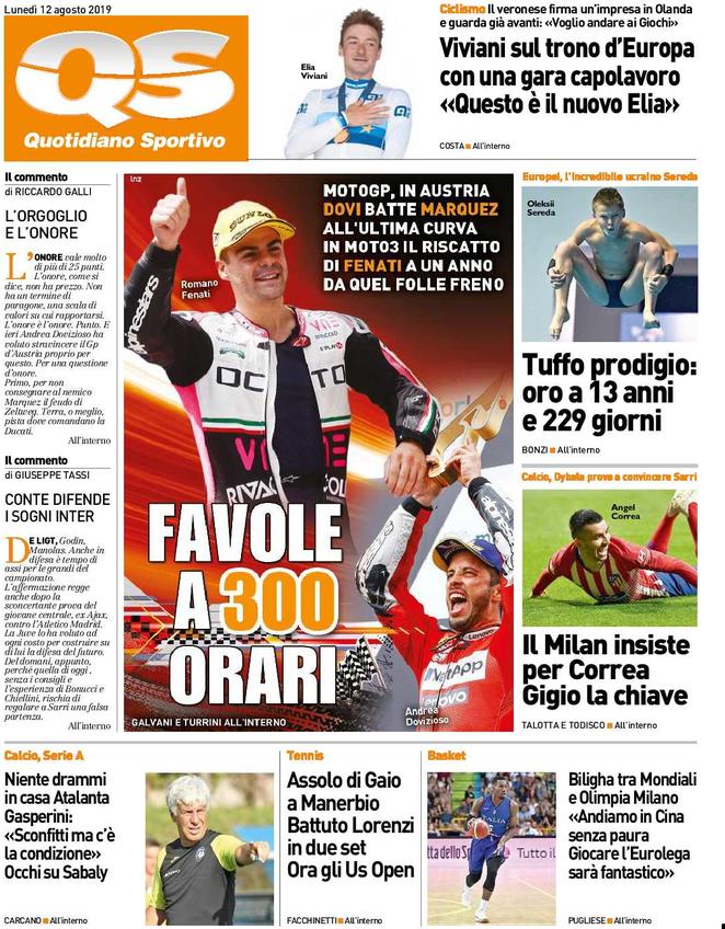 TORINO – Ecco che vi proponiamo l’apertura in prima pagina del Quotidiano Sportivo disponibile in tutte le edicole di oggi 12/08/2019.