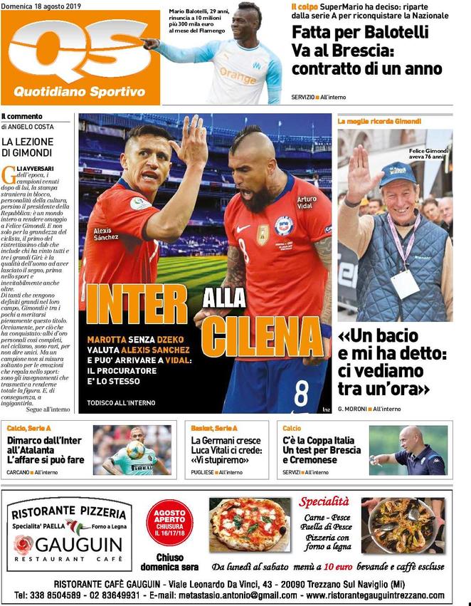 TORINO – Ecco che vi proponiamo l’apertura in prima pagina del Quotidiano Sportivo disponibile in tutte le edicole di oggi 18/08/2019.