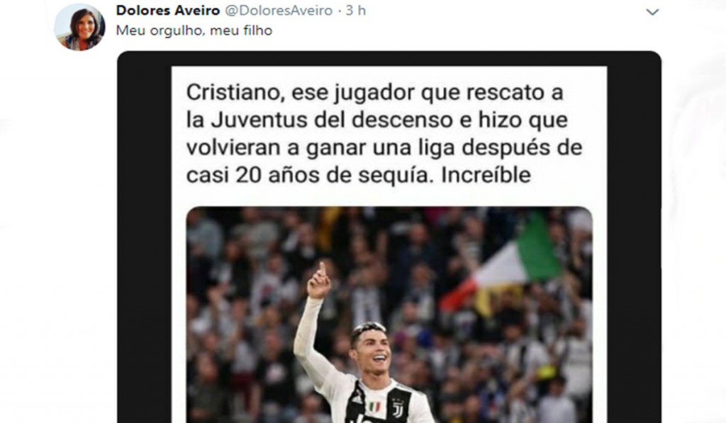 Lo si può notare dalle dichiarazioni d’amore continue da parte dell’attaccante della Juve, così come continui sono i post che sua madre pubblica sui social, dimostrando quanto sia orgogliosa dei risultati raggiunti dal figlio. L’ultimo su Twitter, però, ha creato scompiglio tra i tifosi della Juventus, sconvolti dal messaggio riportato nella didascalia che, tradotto in italiano, recita: “Cristiano, quel giocatore che ha salvato la Juventus dalla retrocessione e l’ha fatta tornare a vincere un campionato dopo quasi 20 anni di siccità. Incredibile”. Chissà cosa ne penserà il numero 7 che, invece che a una salvezza, ha contribuito “solamente” alla vittoria dell’ottavo scudetto consecutivo da parte della Vecchia Signora. E intanto proprio in questi minuti sono arrivate altre indiscrezioni veramente clamorose. Ultim’ora bomba su Allegri: l’annuncio è arrivato in diretta TV a Sky! >>>VAI ALLA NOTIZIA